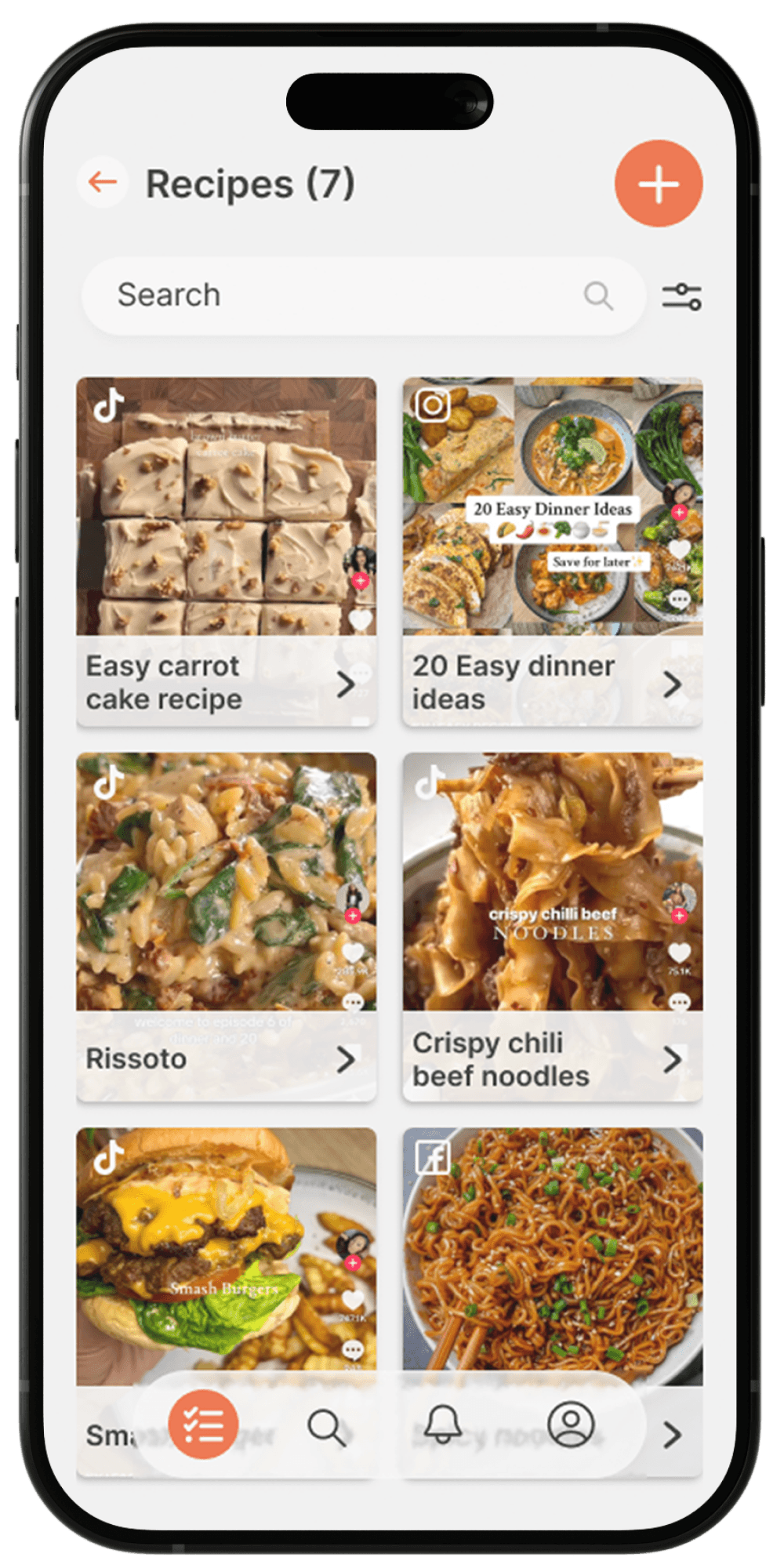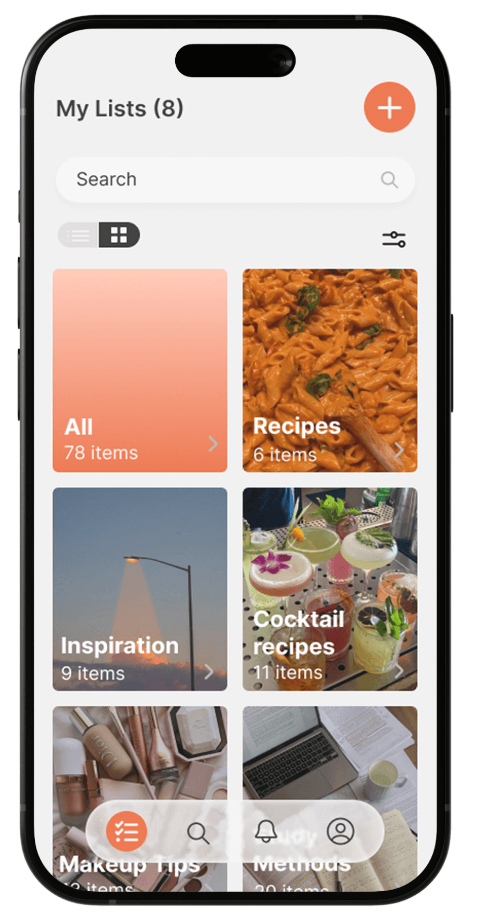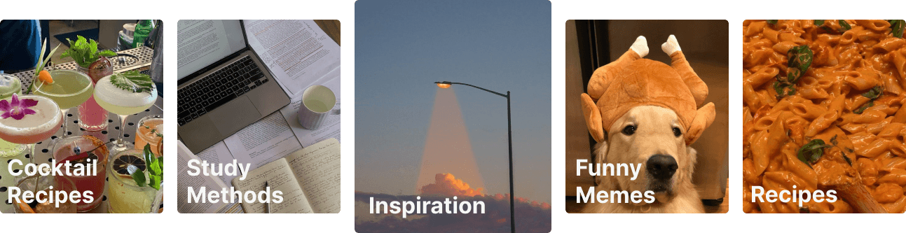Smart Tagging & Previews Organizing content by topic (e.g., Recipes, Work) with visual thumbnails for instant recognition