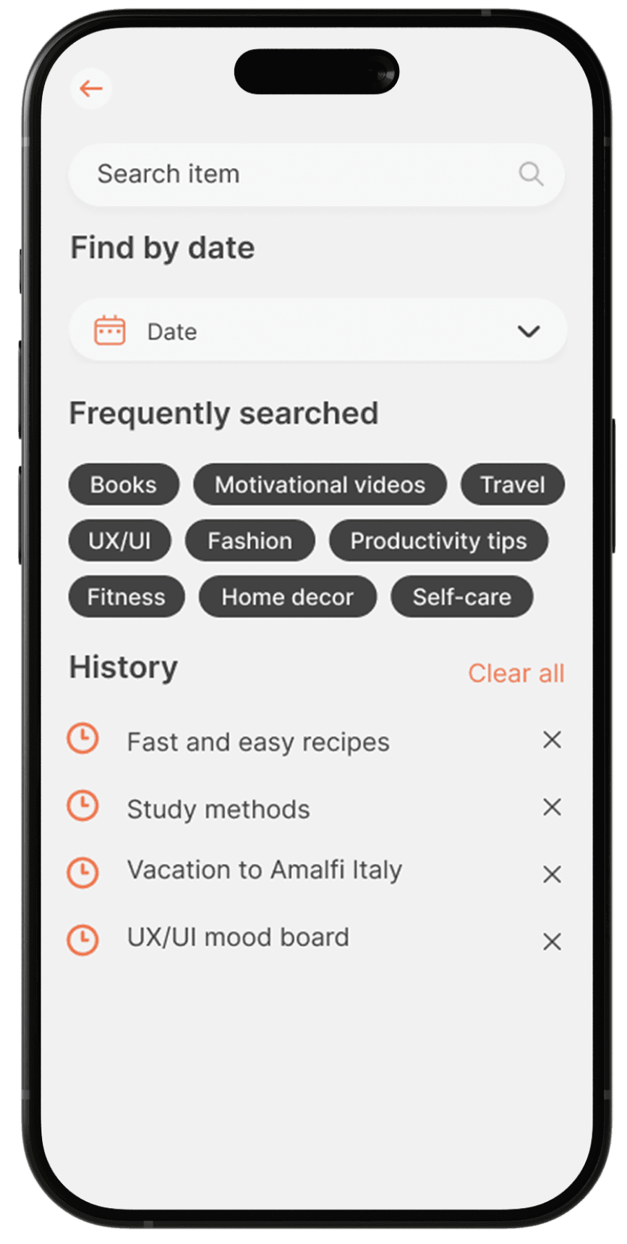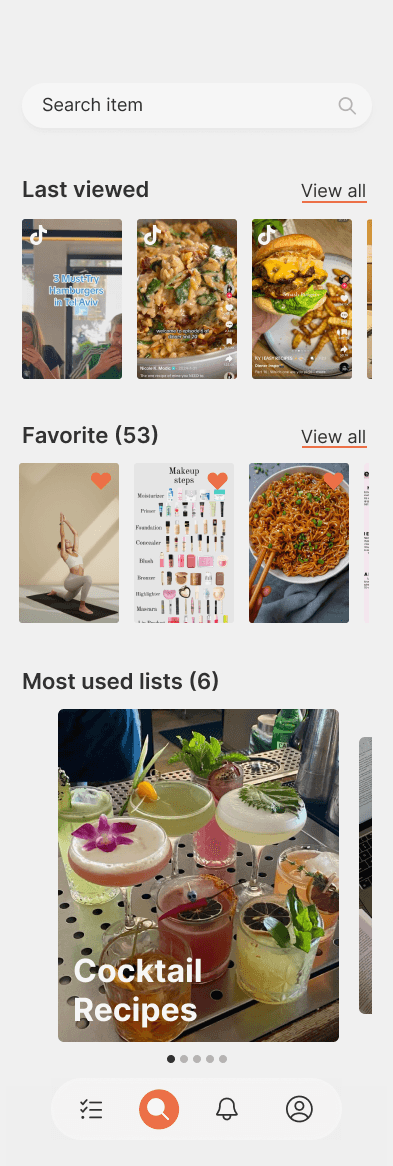 Effortless Discovery Locate saved items instantly via tags and smart search