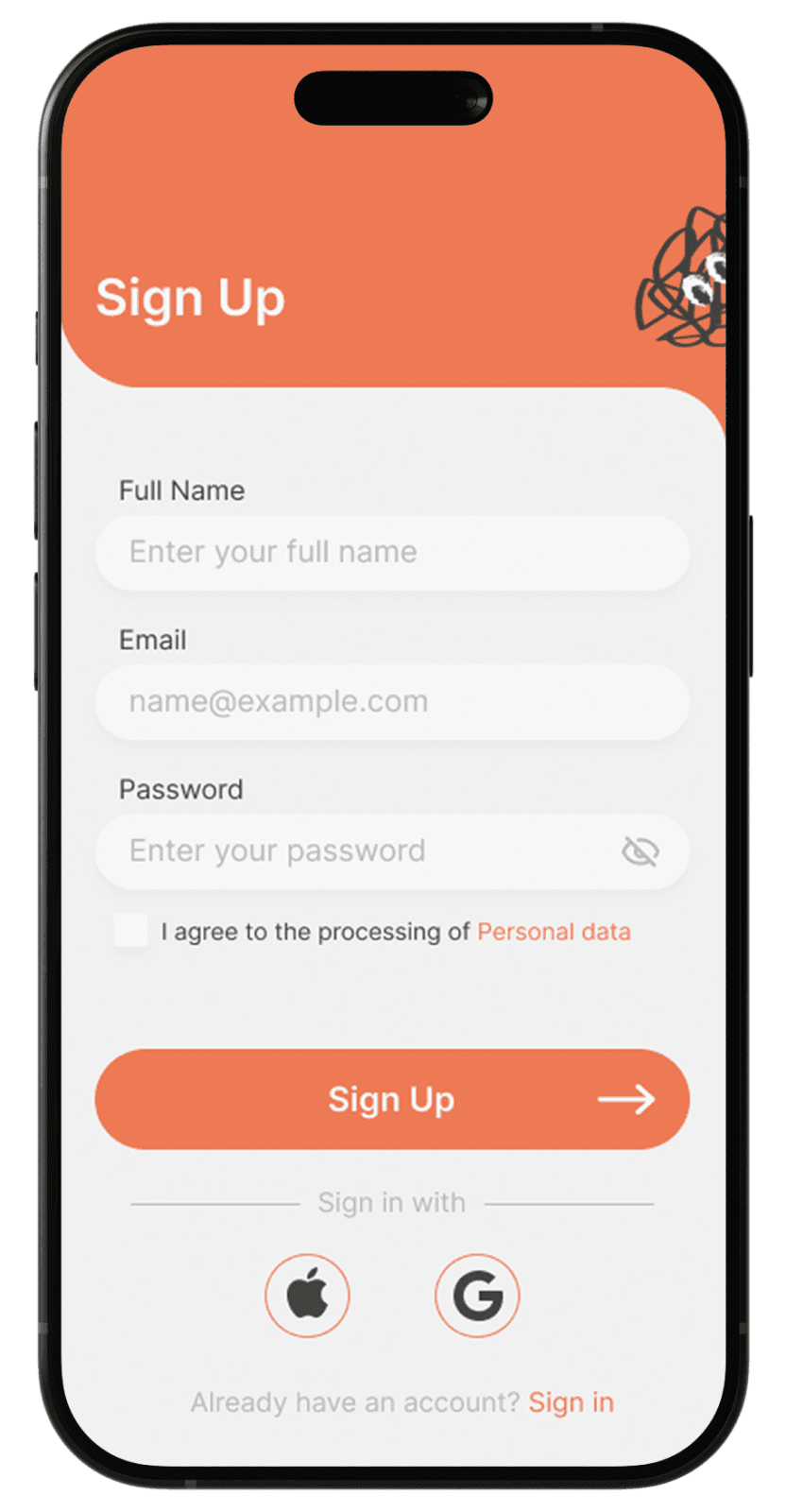 using vibrant orange as a high-contrast accent for quick, intuitive actions