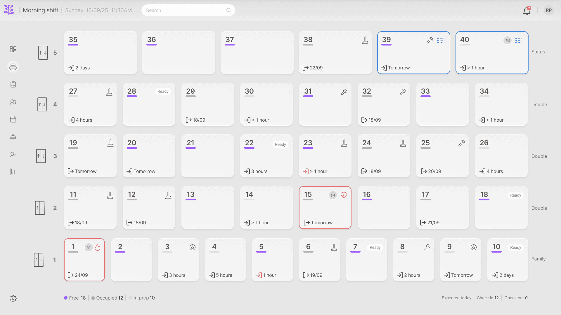 A room isn't just a number, it carries guest history, pending tasks, and active alerts. Not all of this information belongs on the main dashboard, but it needs to be instantly reachable when needed.